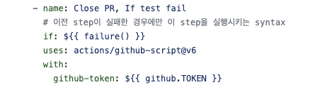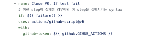 - name: Close PR, if build fails # 빌드 실패시 pr 닫기