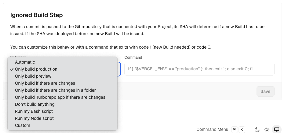 이에 나는 CI가 성공해야 Vercel이 프로덕션 환경에 자동배포를 하도록 CDep 프로세스를 제어하고 싶다.