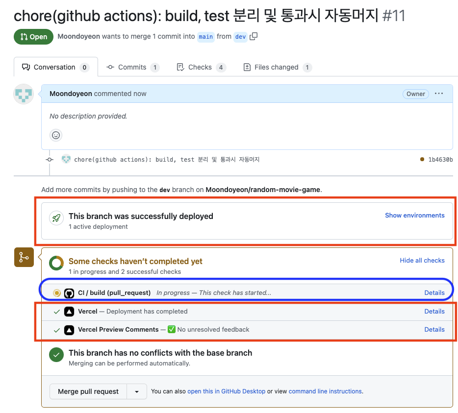 3-1. 빌드-테스트에 성공하면, 자동으로 PR Merge