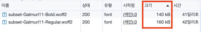 [subset 폰트를 생성](https://transfonter.org/)해 다운로드 받는 폰트 용량 크기를 줄였다.