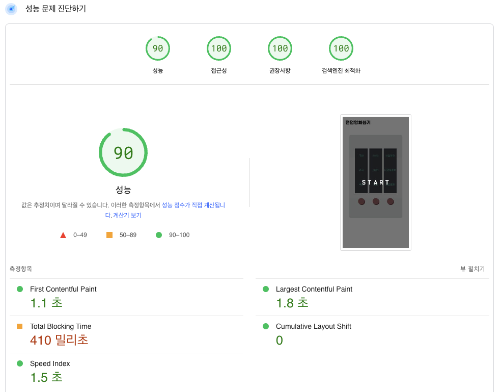 최적화 작업을 통해 PageSpeed Insight, lightHouse 등의 점수를 올리자!