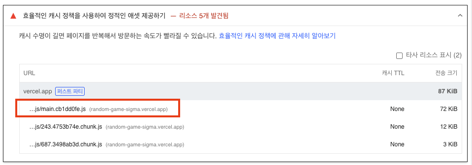 진단 파악: 정적자산에 대해 캐시 헤더를 설정하라는 것으로 이해했다.