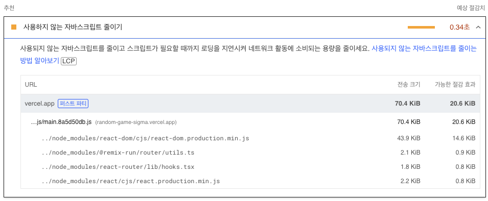 2.2 사용하지 않는 자바스크립트 줄이기