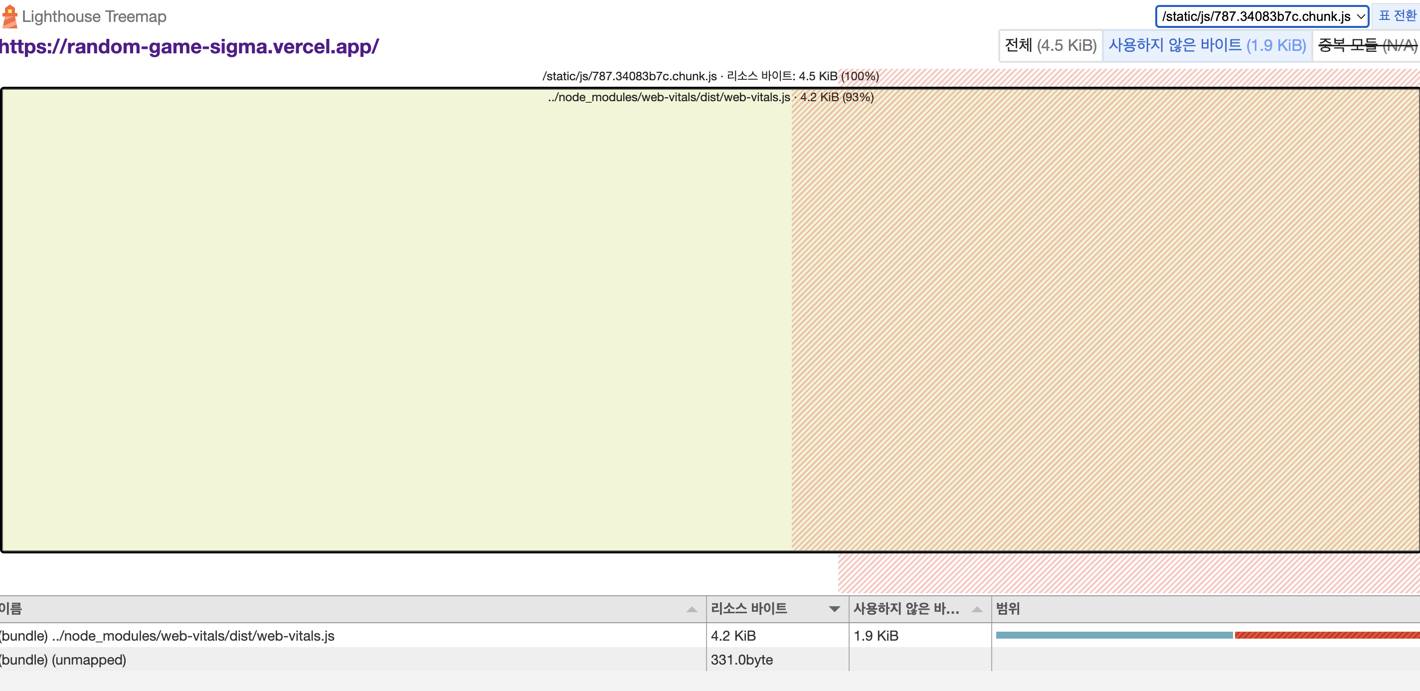 2) GameResult 컴포넌트의 지연로딩을 해제하면서, bundle JS 크기가 커지고, js 다운받는 시간 증가