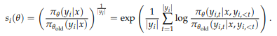 - 토큰에 대한 중요도 비율(Importance ratio)은 아래와 같이 정의됨