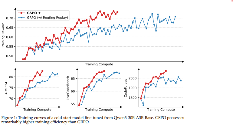 - GSPO는 시퀀스 단위로 작동하기 때문에 precision discrepancy에 더욱 강건해, 추론 엔진이 리턴하는 확률(likelihood)을 직접 사용 가능