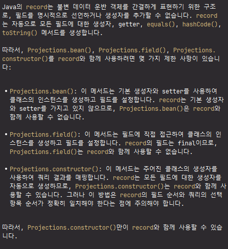 그럼 record 클래스에 Projections.constructor를 사용하면 되지 않겠냐 하신다면