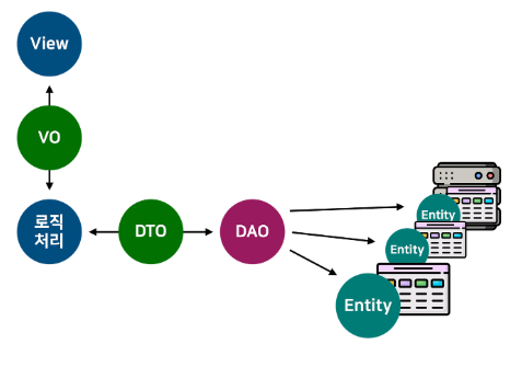 | 목적 | 데이터베이스 접근 | 계층 간 데이터 전송 | 값 표현 |