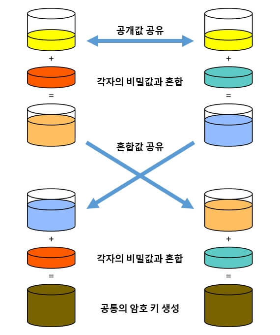 디피-헬만(Diffie-Hellman)으로 쉽게 이해가 가능하다.