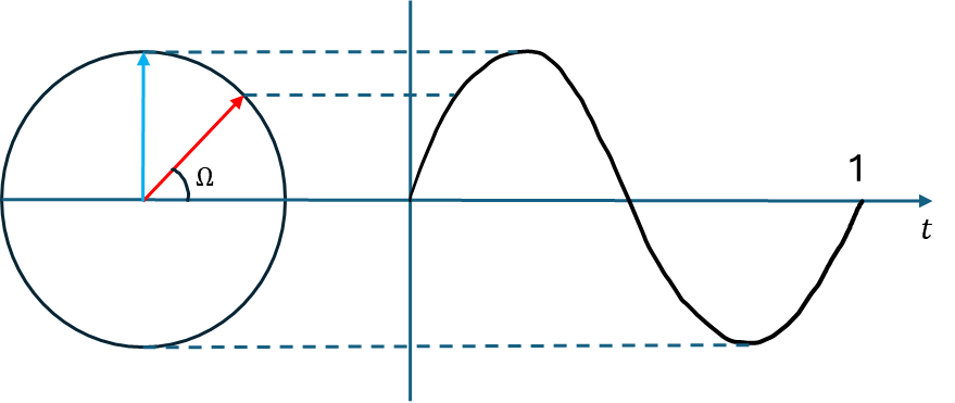 여기서 각주파수의 의미를 잘 파악해야 한다. 는 정현파 함수가 얼마나 빨리 회전하는지를 의미한다.