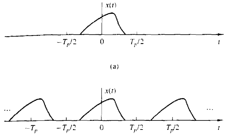 비주기 신호 x(t)는 −2Tp<=t<=2Tp 에서 주기 신호 xp(t)와 같다. 따라서 주기 신호 x(t)를 푸리에 급수로 나타내면 식 [4.1.22]와 같다.