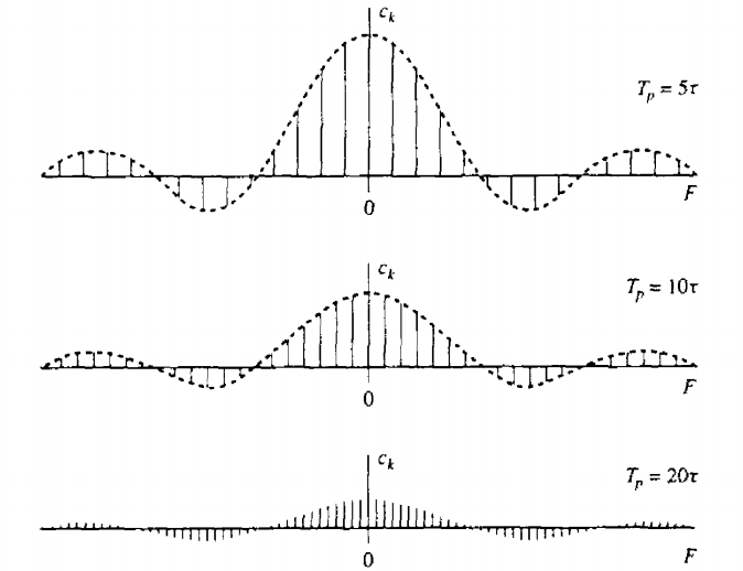 만약 주기 Tp가 무한대로 가면 주기 신호는 비주기 신호가 되고 주파수 축에서 인접한 주파수 간격이 0이 됨을 확인할 수 있다. 즉 연속한다.