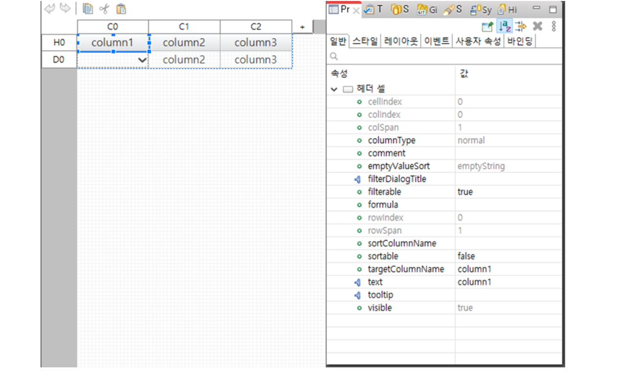 헤더 병합 그리드