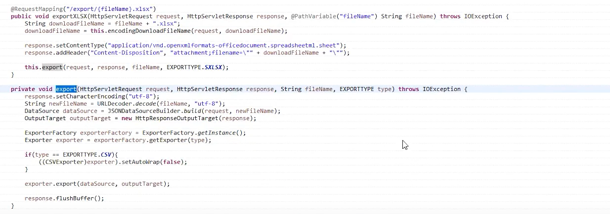 ExportUtil api 정보는 HelpContents > eXBuilder6 > API Reference > cpr.utils > ExortUtil > Methods 를