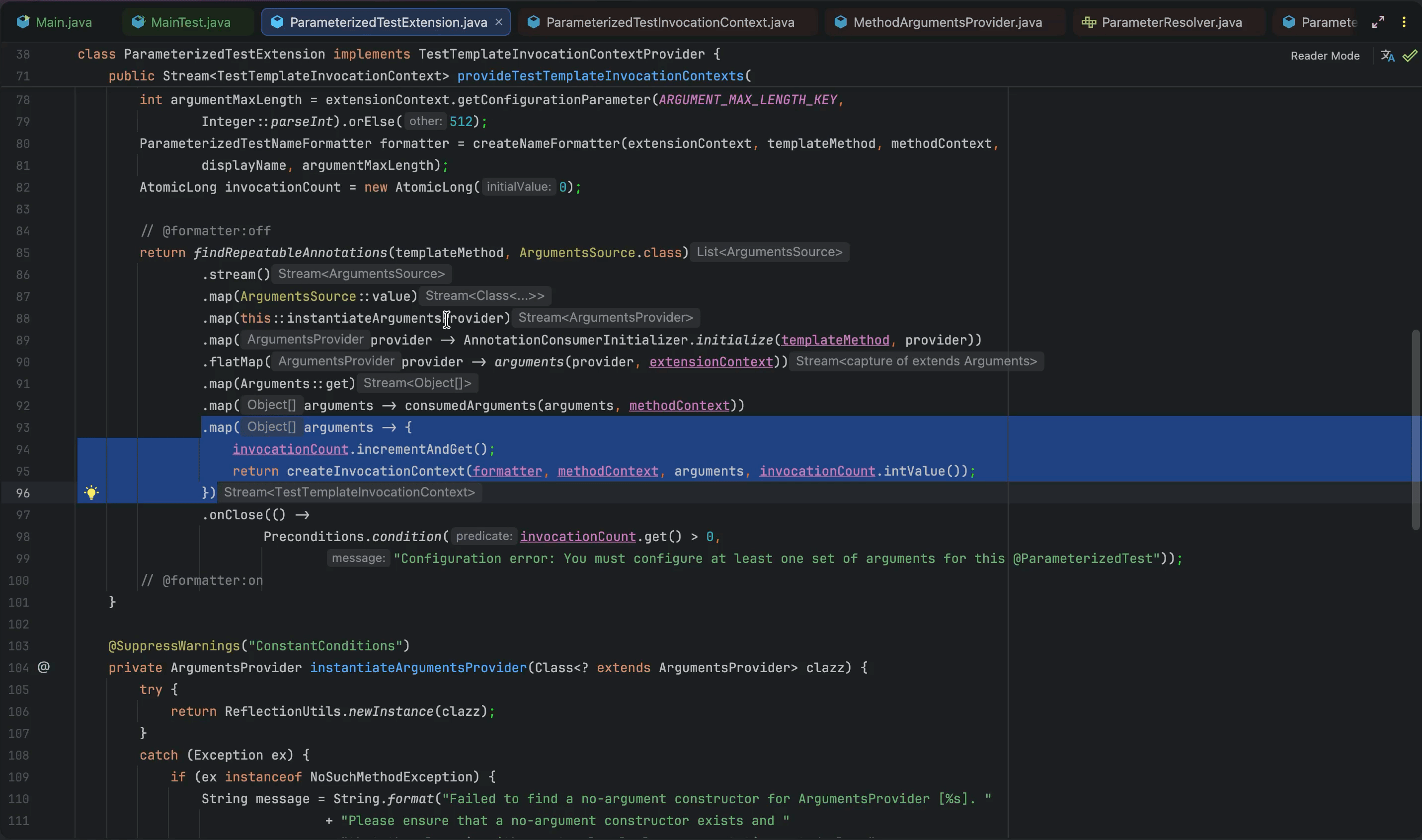 protected Stream<? extends Arguments> provideArguments(ExtensionContext context, MethodSource methodSource) {}