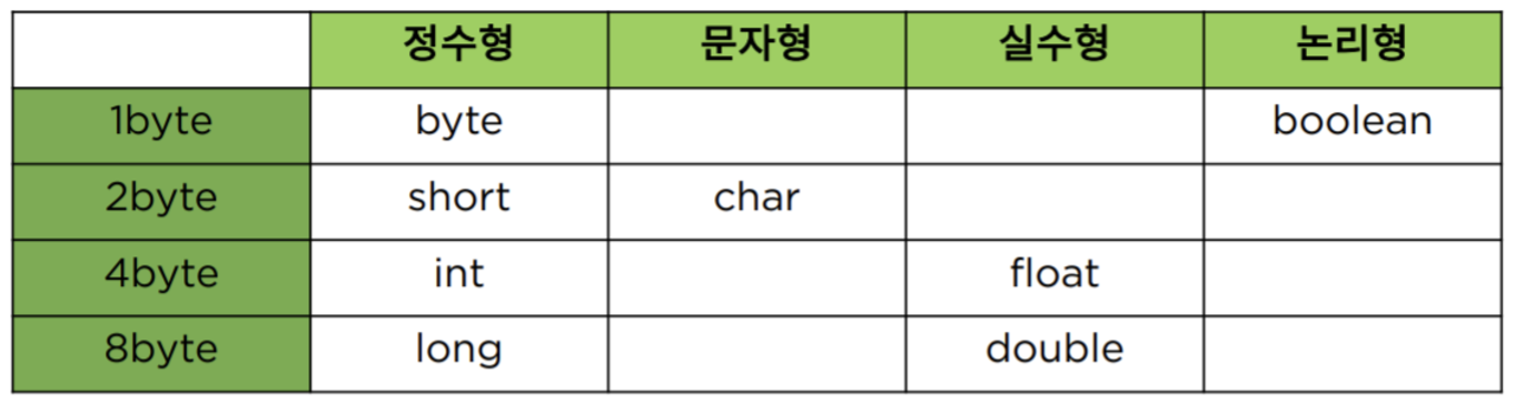 기본형 : boolean, char, byte, short, int, long, float, double