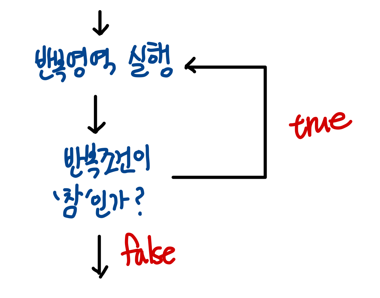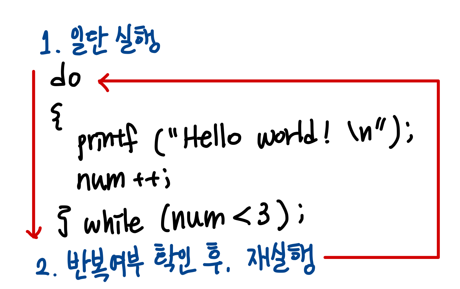 do 다음에 등장하는 중괄호가 반복영역이고, 중괄호에 이어서 등장한 것이 반복 조건이다. 위의 코드는 다음 실행흐름을 갖는다.