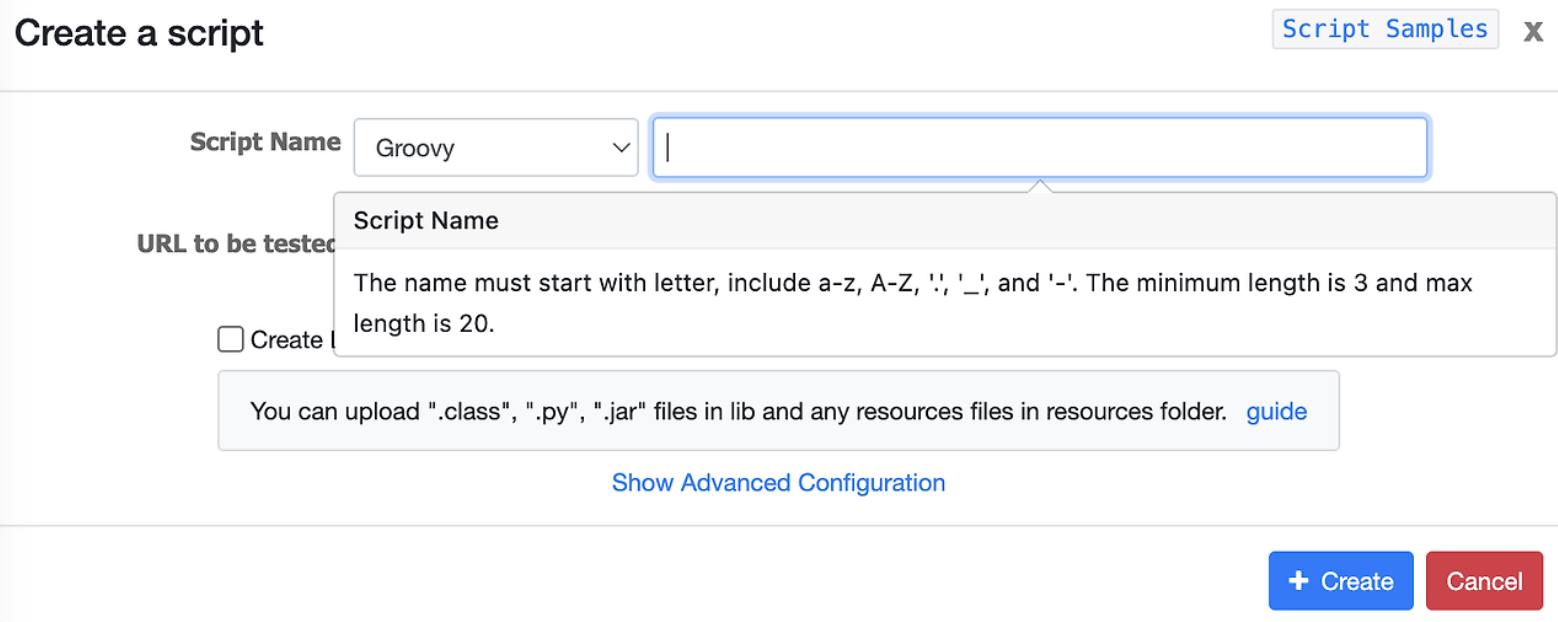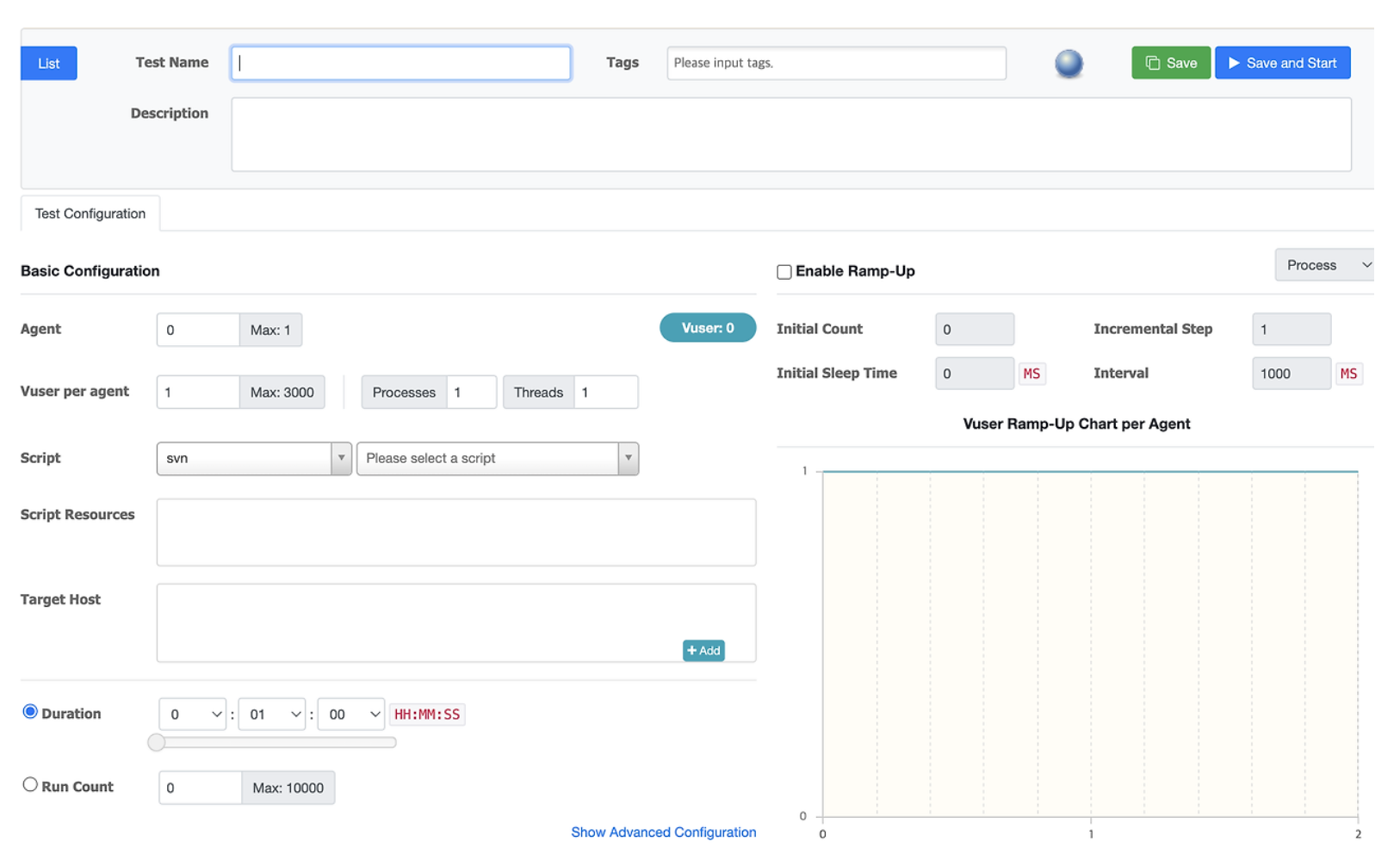 이후 Performance Test에서 Create Test 를 누르면 셋팅할 수 있는 화면을 보여준다.