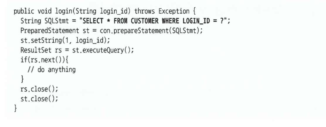 라이브러리 캐시에서 SQL을 찾기 위해 사용하는 키 값이 sql 문 그자체 이다. 만약 500만 고객이 동시에 여러번 아래의 코드로 로그인 한다고 생각해보자.