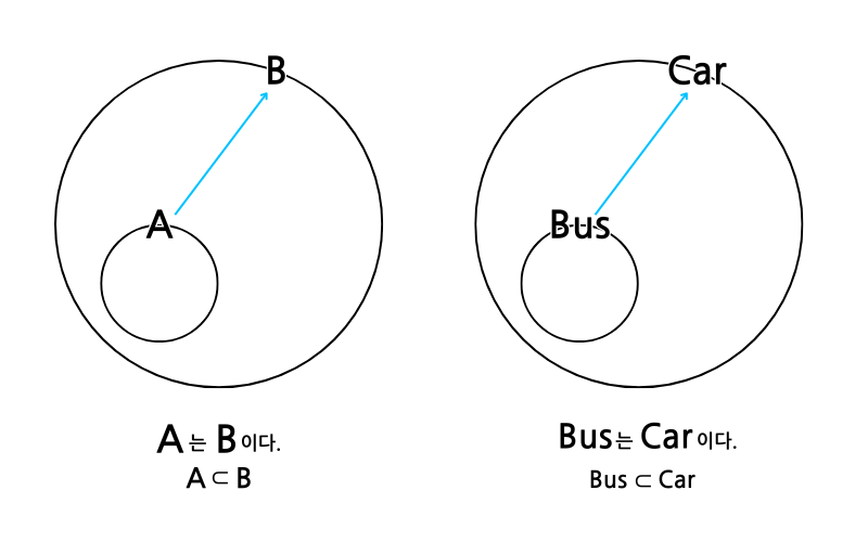 "상속이라는 문법을 사용해야 하나?" 에 대해 고민할 때 "OO는 OO의 종류 중 하나다."에 들어맞는지 체크해보아야