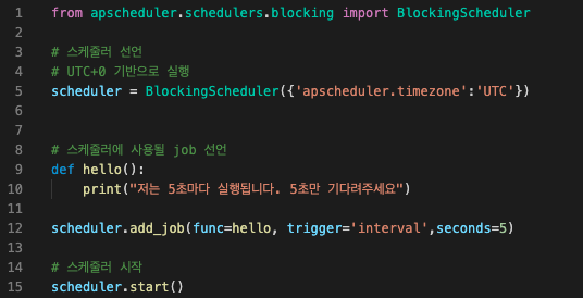 scheduler = BlockingScheduler({'apscheduler.timezone':'Asia/seoul'})