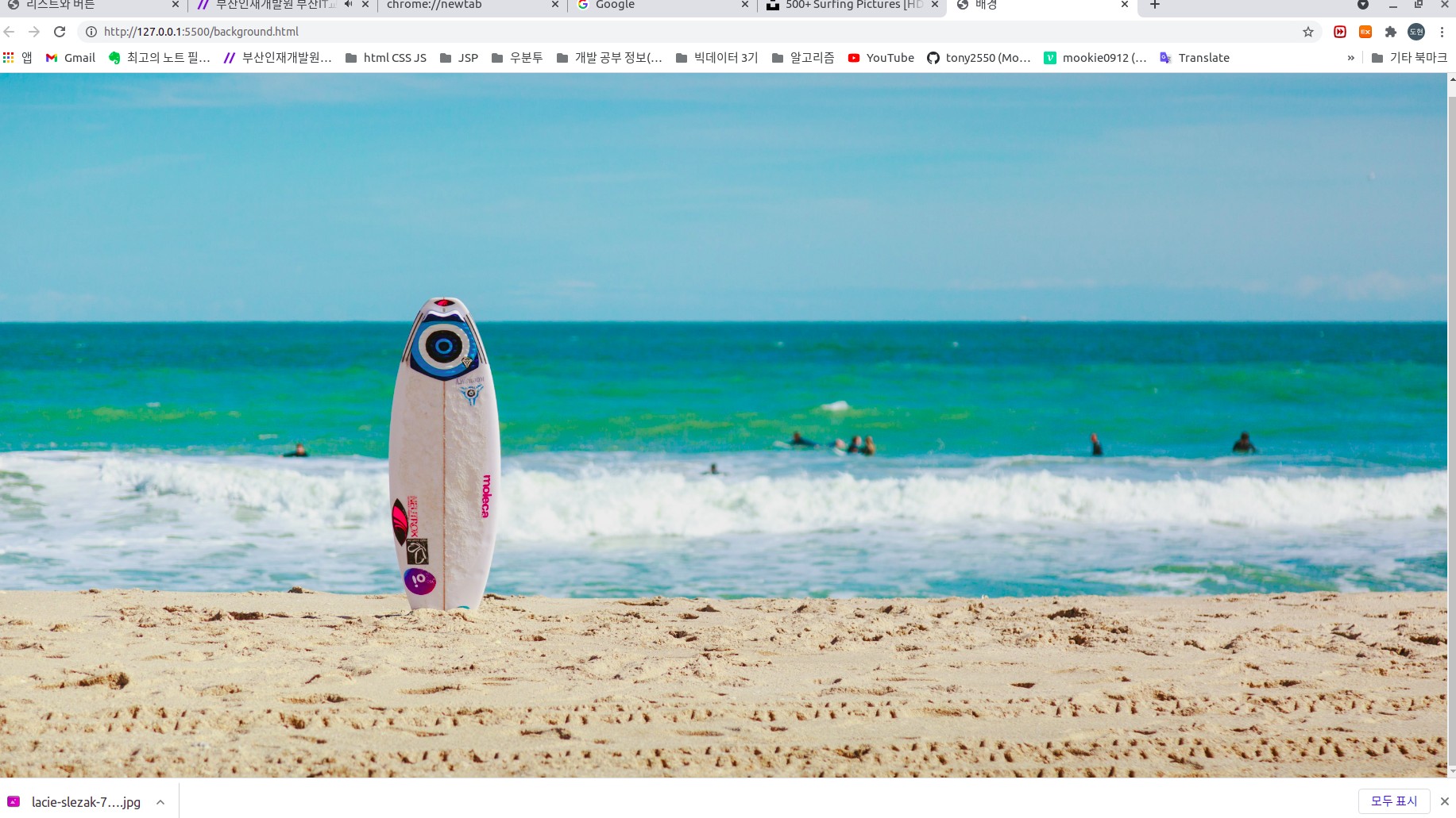 배경으로 들어가는 사진의 크기는 background-size로 설정이 가능한데 위에서는 cover로 설정을 해서 페이지에 맞추었다