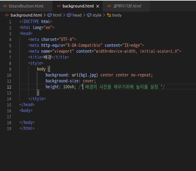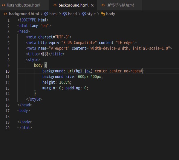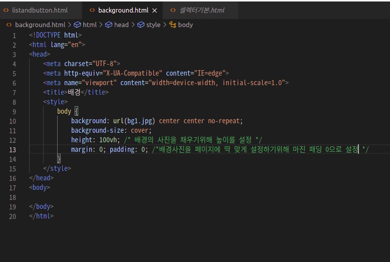 이번에는 body 태그 설정을 초기화하고 사진 2개로 페이지의 배경을 만들기위해