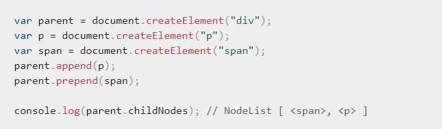 prepend()를 이용하니 기존 엘리먼트들의 앞에서 추가가 됐다. MDN에서 밑의 자료를 참고했다.