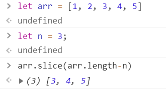 개발자 도구에서 몇번 실험을 해본 결과, arr.slice(arr.length-n)을 하면 됐었다.