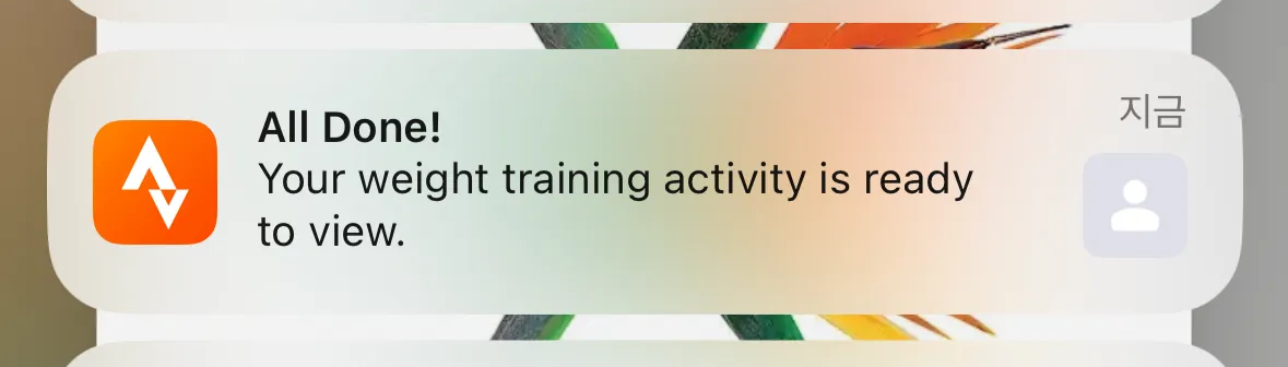Strava 앱은 운동을 완료하면 자동으로 앱에 운동 기록을 등록해 주었다고 노티를 줍니다.