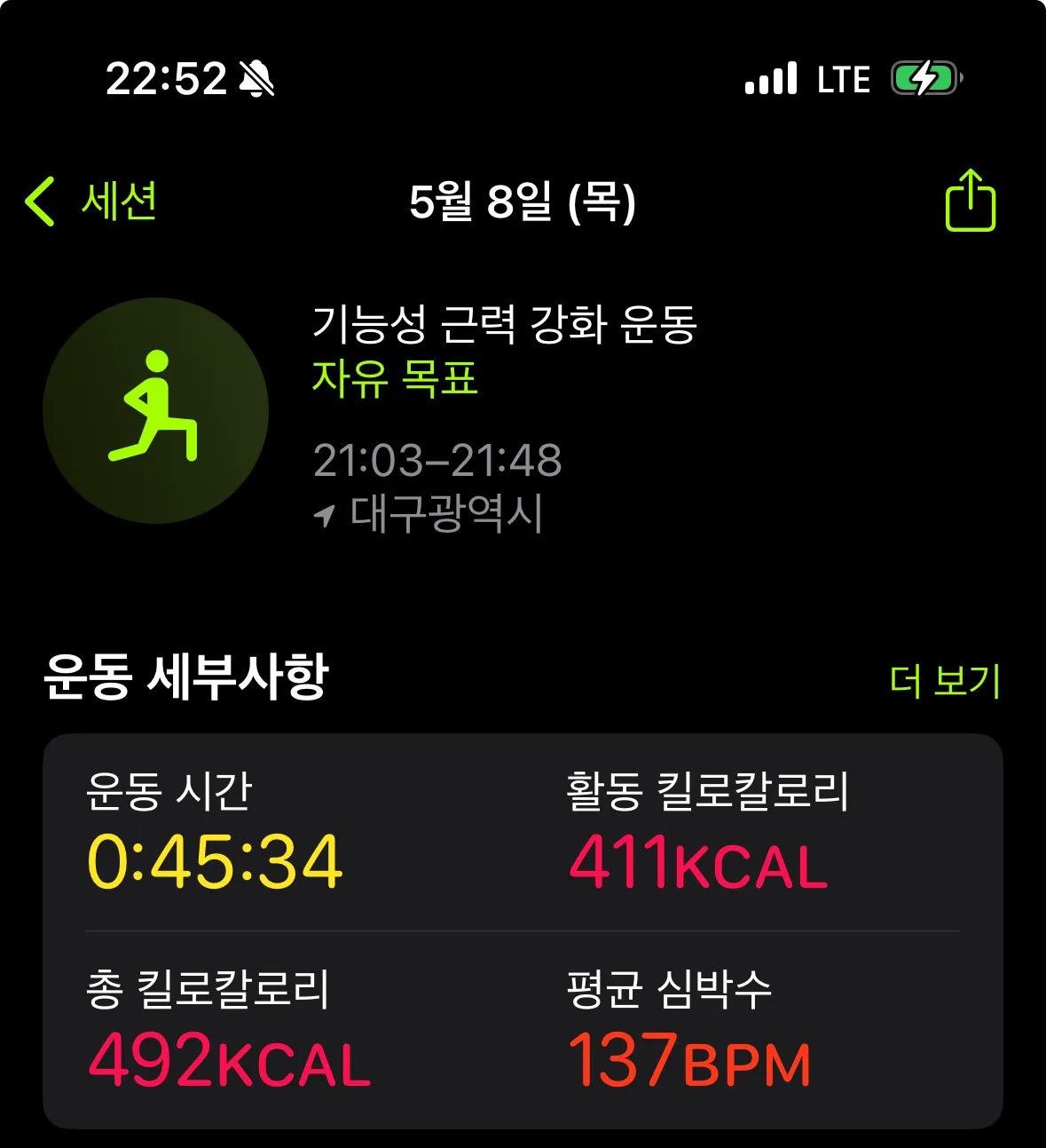 이렇게 설정을 완료하고 운동을 한번 해보았습니다.