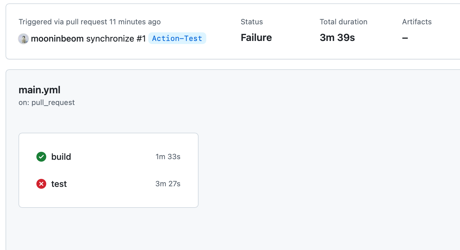 그럼 이렇게 저장하고 pr을 올리면 테스트가 실행이 되지만…..