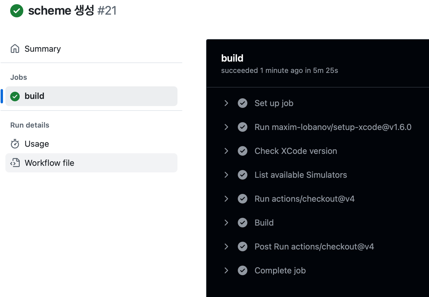 여기서 핵심은 마지막 run에 xcodebuild에 있습니다.