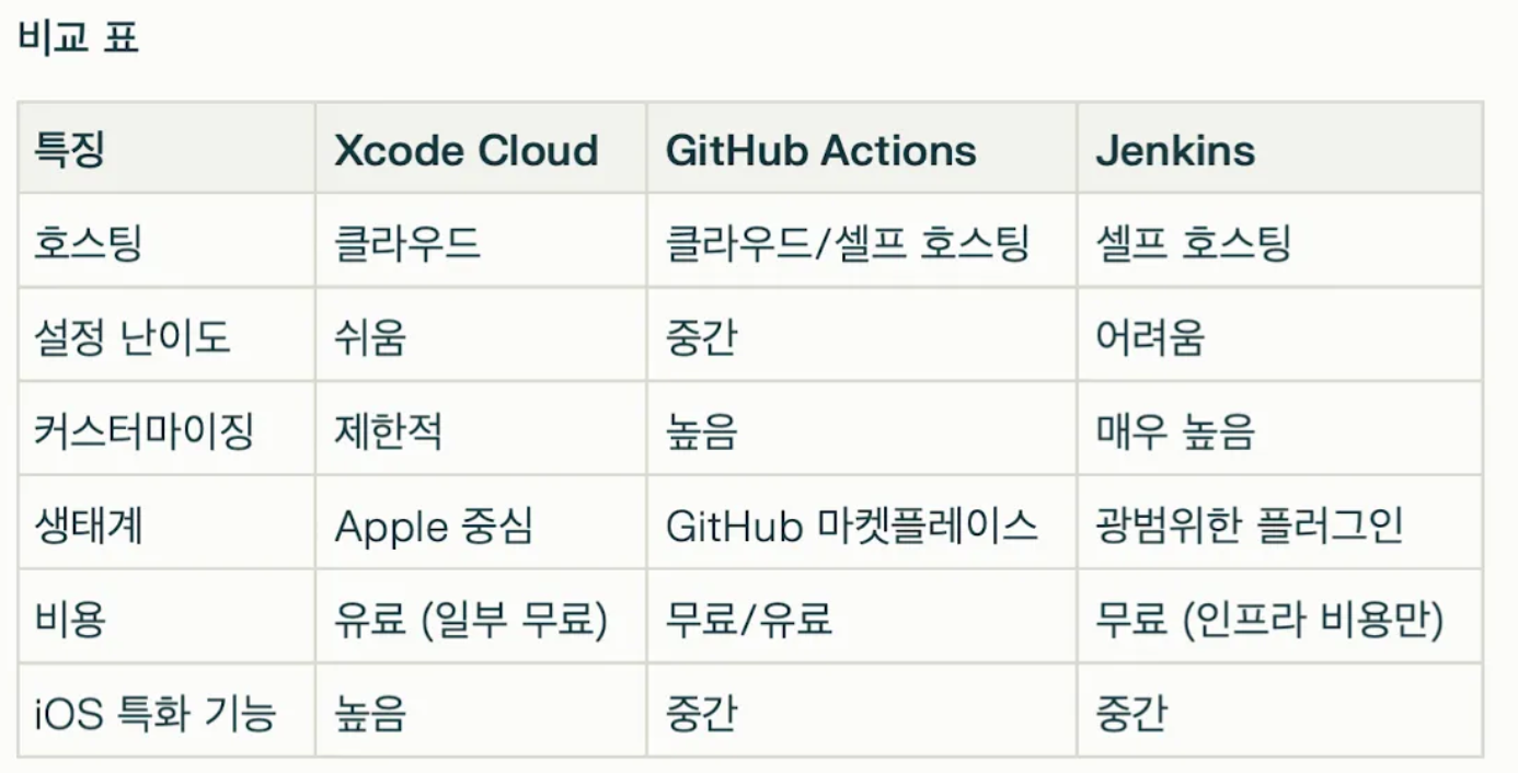 iOS 프로젝트인 만큼 Xcode Cloud를 사용하면 이점이 많을 것이지만 iOS 말고도 다양한 프로젝트에서 사용할 수 있어 범용성이 높은 깃허브 액션을 사용해보는 것이 학습적인 측면에서 더욱 좋을 것이라 생각이 들었습니다.