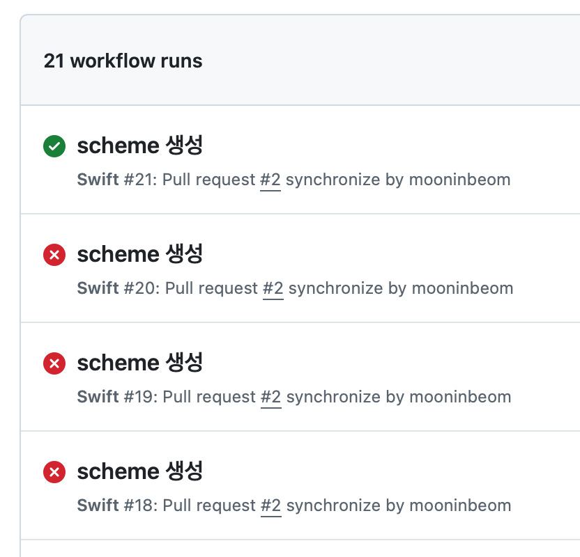이렇게 github actions에서 사용되는 Xcode의 버전을 직접 맞추었습니다. 특정 버전을 사용할 경우 직접 입력하면 됩니다. 최신 버전을 사용할 경우 latest 나 latest-stable 를 사용하면 됩니다.