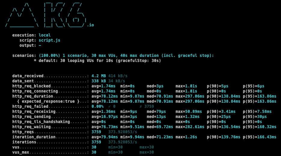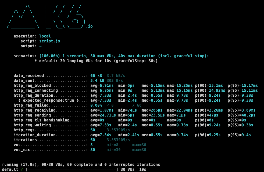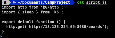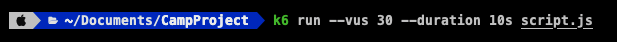 script 파일을 실행한다. vus 란 뜻은 virtual user로 가상 유저를 말한다.