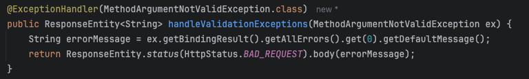 Valid 어노테이션에서 발생하는 예외는 MethodArgumentNotValidException 예외 클래스다.