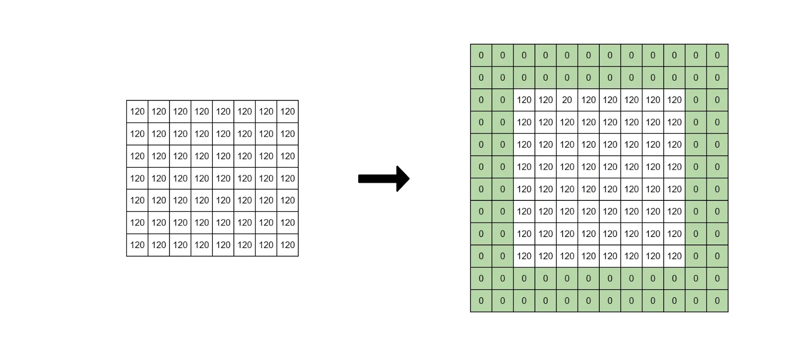 이미지 데이터를 filter에 적용시키는 과정에서 중앙에 가까운 픽셀 데이터는 사용이 많이 되지만, 가장자리 픽셀 데이터는 적게 사용되어 주변에 픽셀 데이터들을 추가하는 것이다