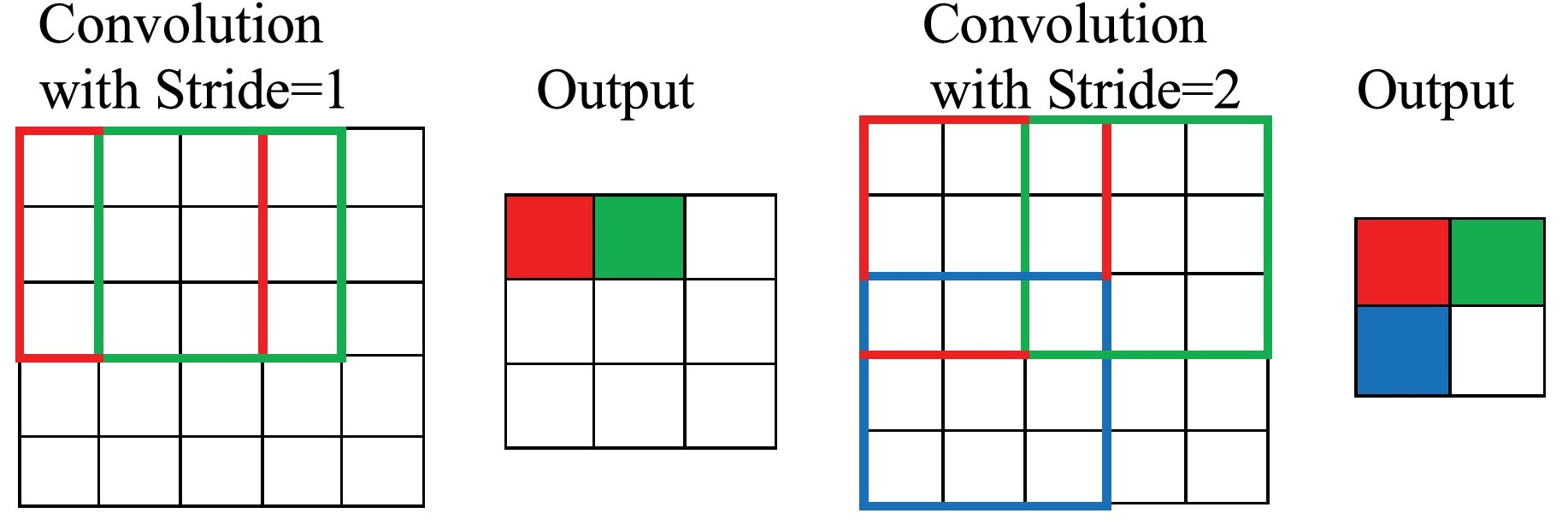 stride는 입력 데이터에 필터를 적용하는 과정에서 연산을 수행후 얼마나 이동할지를 의미한다.