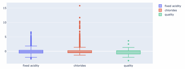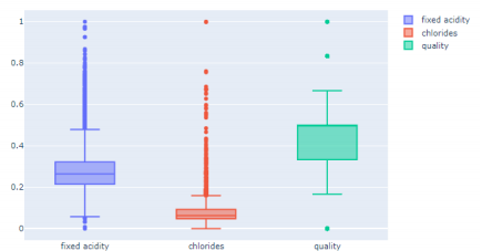 Boxplot을 통해 와인 데이터 항목들을 그렸을 때, 컬럼들의 최대, 최소 범위가 각각 다르고 평균과 분산이 각각 다름