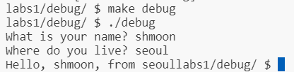 이 실습은 몇 가지 구문 오류가 있는 배포 코드로 시작됩니다. 아이디어는 프로그램을 컴파일(make)하고, 컴파일러에서 출력되는 다소 비밀스러운 오류 메시지를 해석하는 방법을 배우고, 프로그램을 디버깅하는 것입니다.