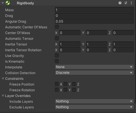 이 개념을 통해 Rigidbody는 다음과 같은 특성을 가진다.