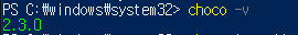 그다음 choco -v로 설치가 잘되었는지 확인한다. 버전이 뜨면 잘설치된것.