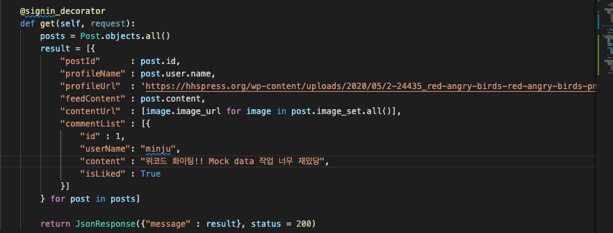 jsonresponse를 할 때, dict 형태로 담아서 보내야 한다.