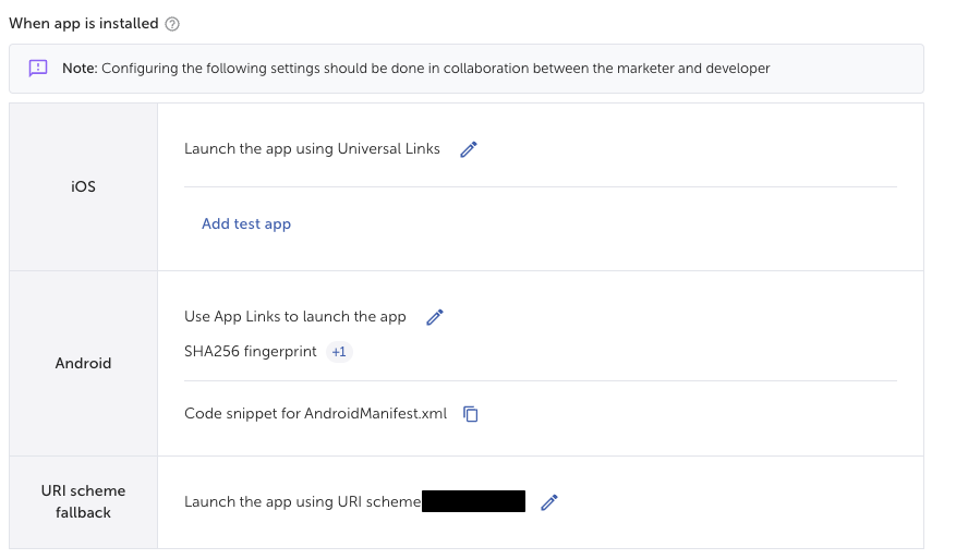 원링크 템플릿을 추가하면서 2에서 찾아온 값들을 각각 유니버설 링크, 앱링크에 세팅해주면 됨.