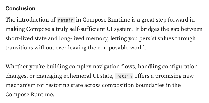 이 글은 retain API 를 가볍게 소개하는 글이기 때문에, retain 의 내부 구현 등의 더 깊은 내용을 알고 싶다면 아래의 skydoves 님이 작성하신 글을 참고하면 도움이 될 듯 하다.
