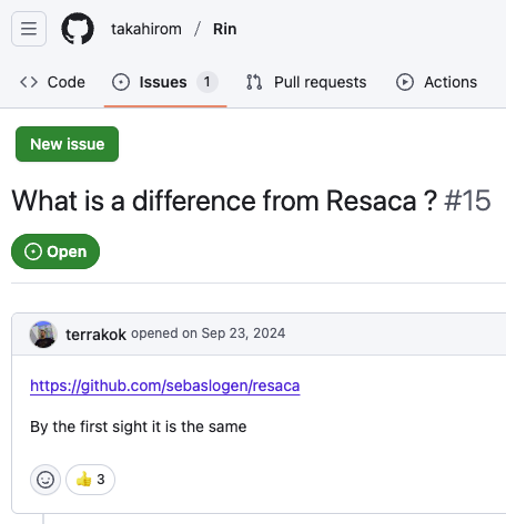 Resaca 라는 라이브러리와 Rin이 매우 유사한데 차이점이 뭔지를 질문하는 글이다.