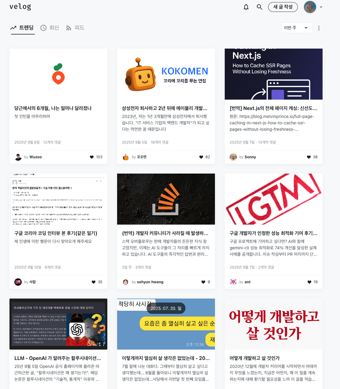 현 시점 벨로그 최신 글 목록을 보면, 상당수가 AI에 의해 생성된 글임을 확인할 수 있다.