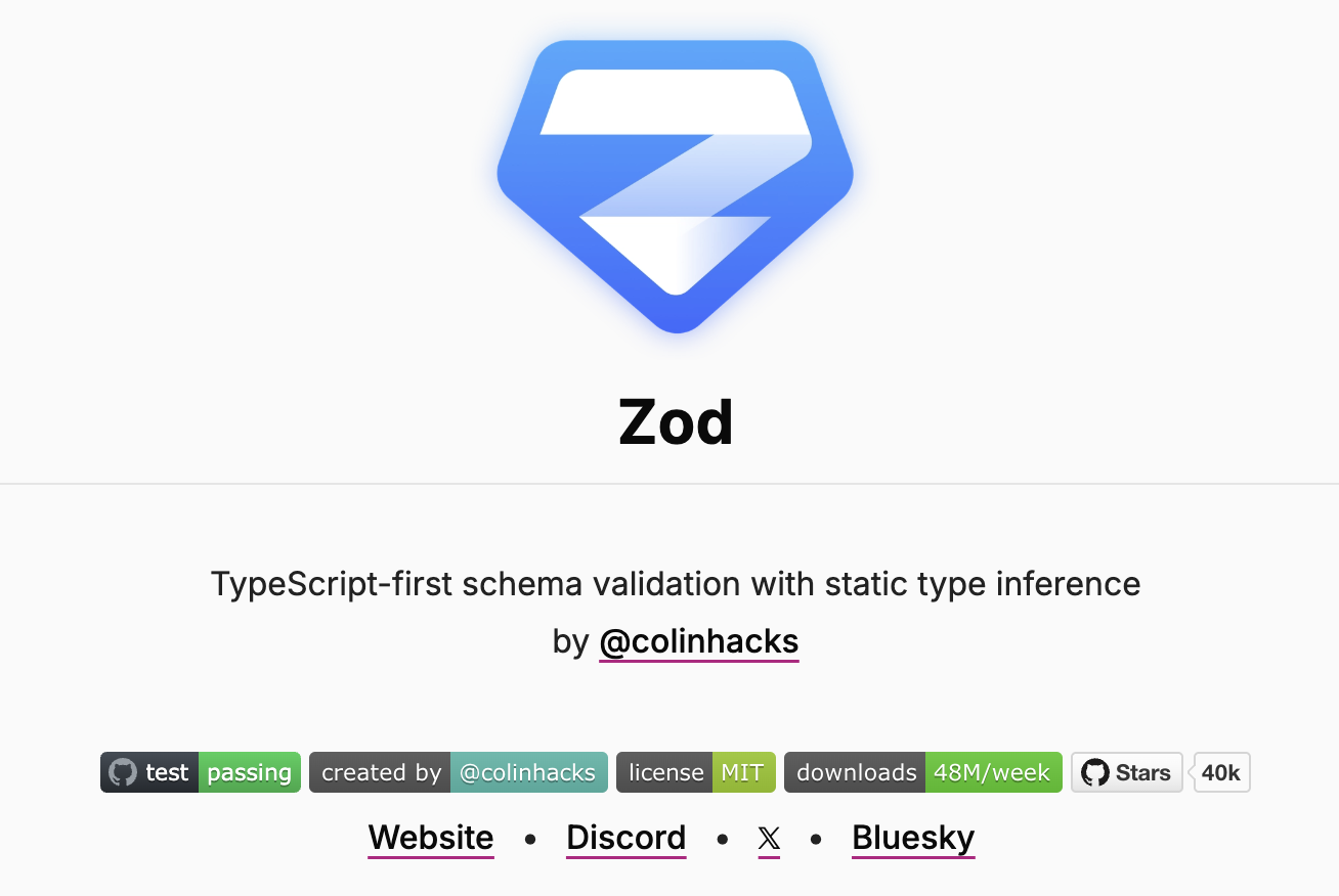 Zod는 TypeScript를 위한 스키마 검증 라이브러리로, 정적 타입 추론을 지원한다.Star가 무려 40K