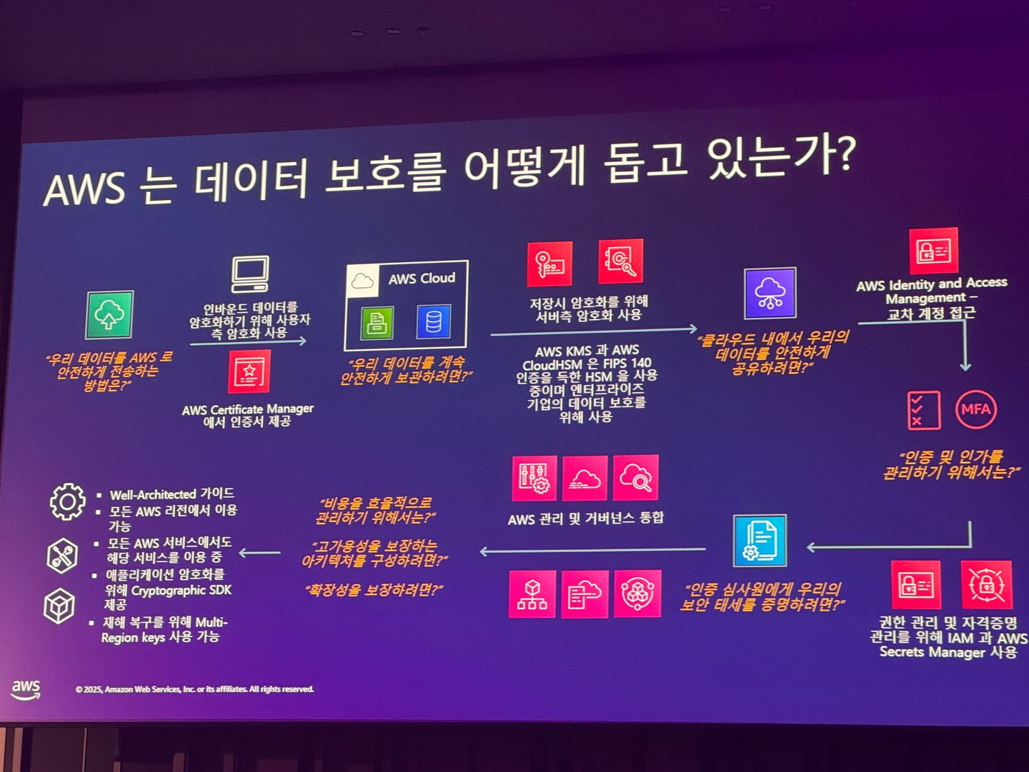 보안 및 거버넌스 부분 세션들의 전반적인 내용이 많이 인상 깊었다.